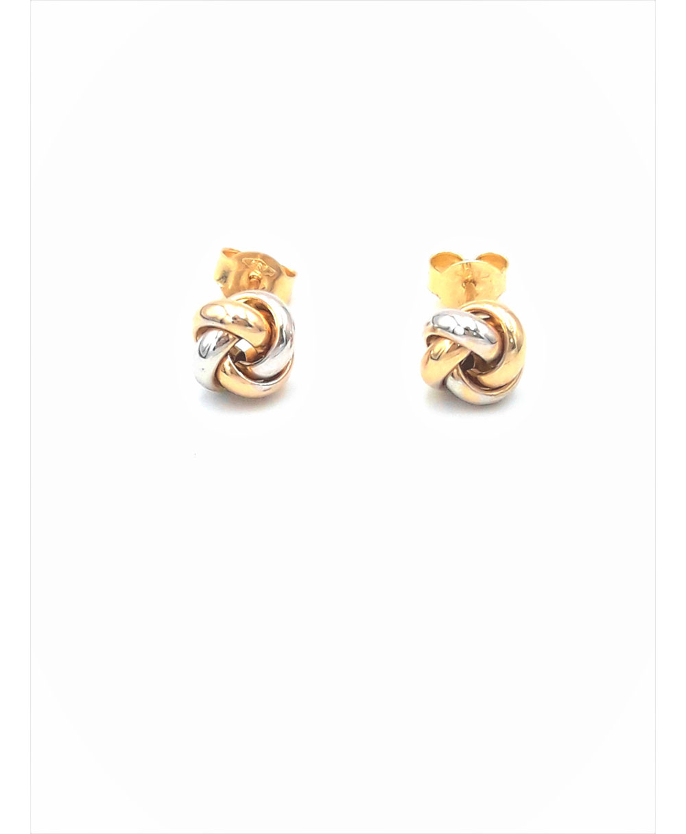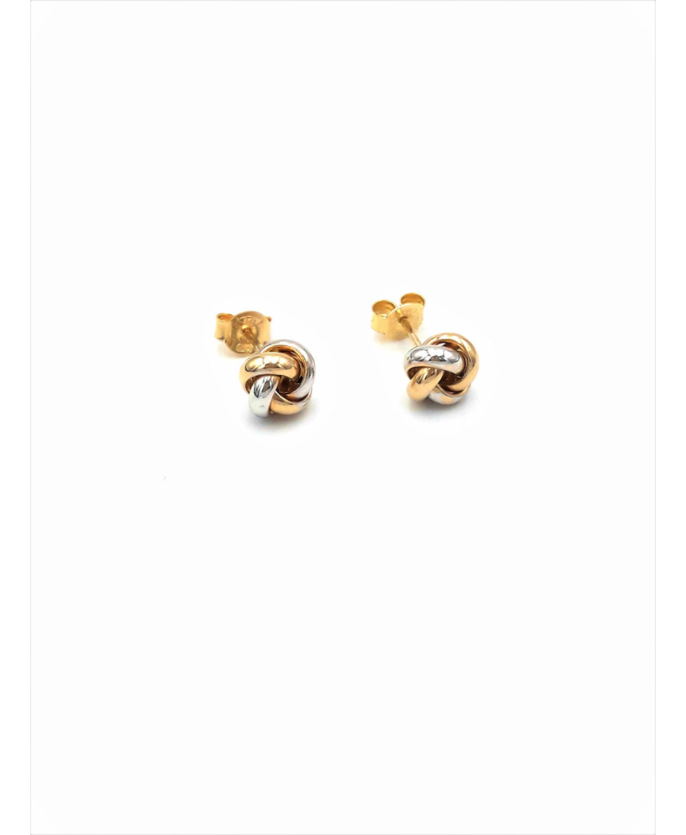 A special pair of earrings made of 14 karat yellow and white gold