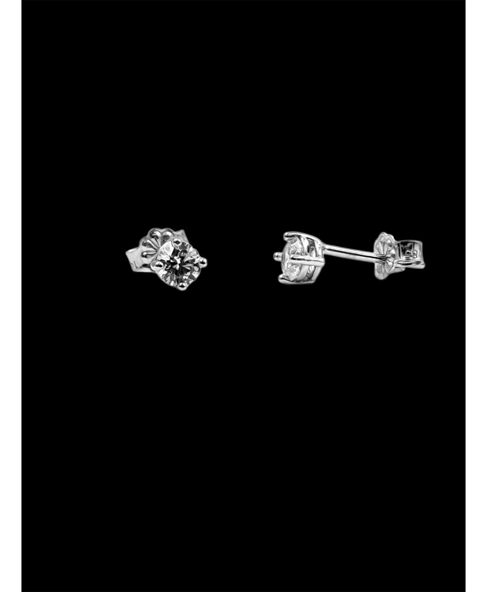 Σκουλαρίκι μονόπετρο με λευκά ζιργκόν απο χρυσό 14 καρατίων.