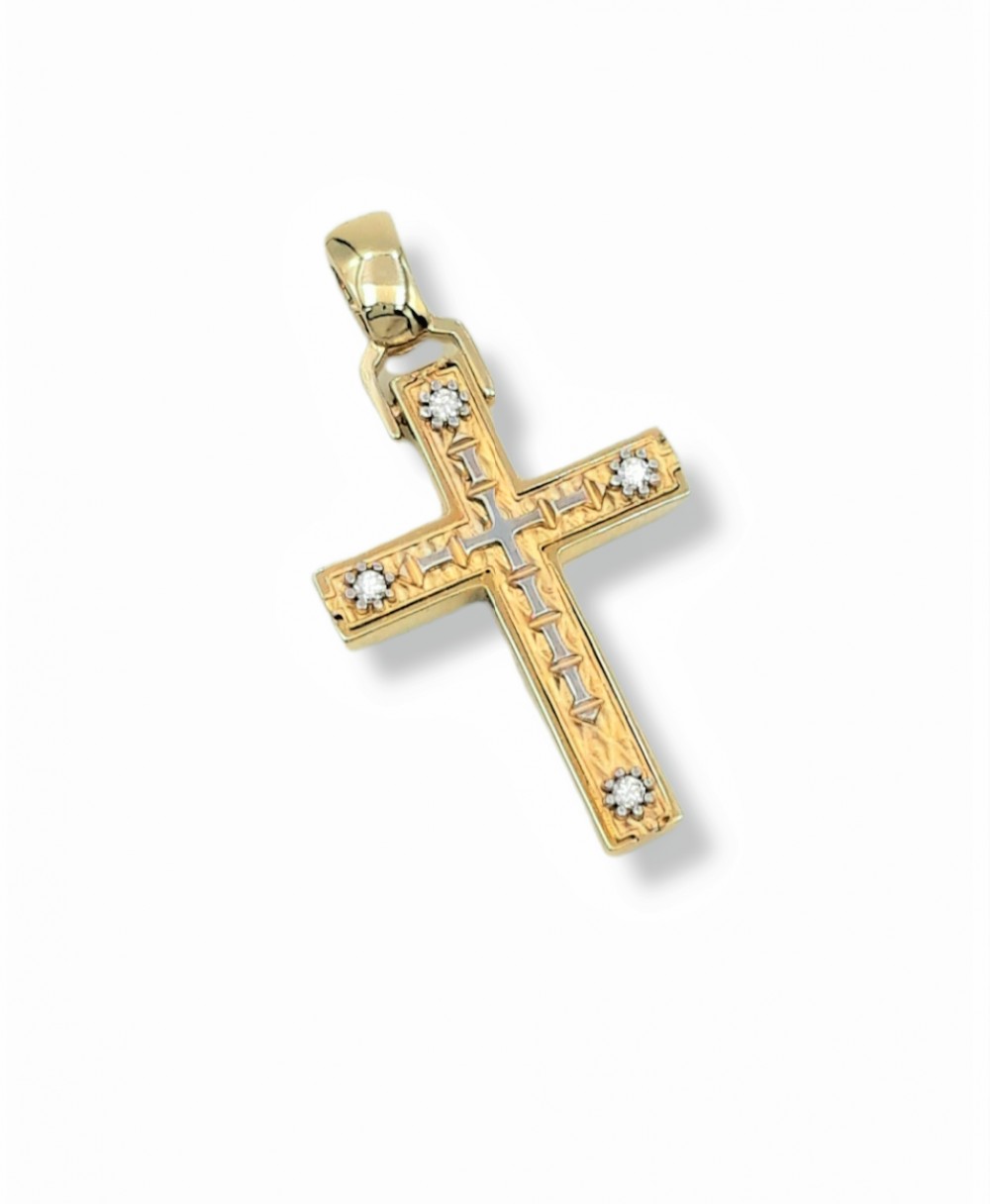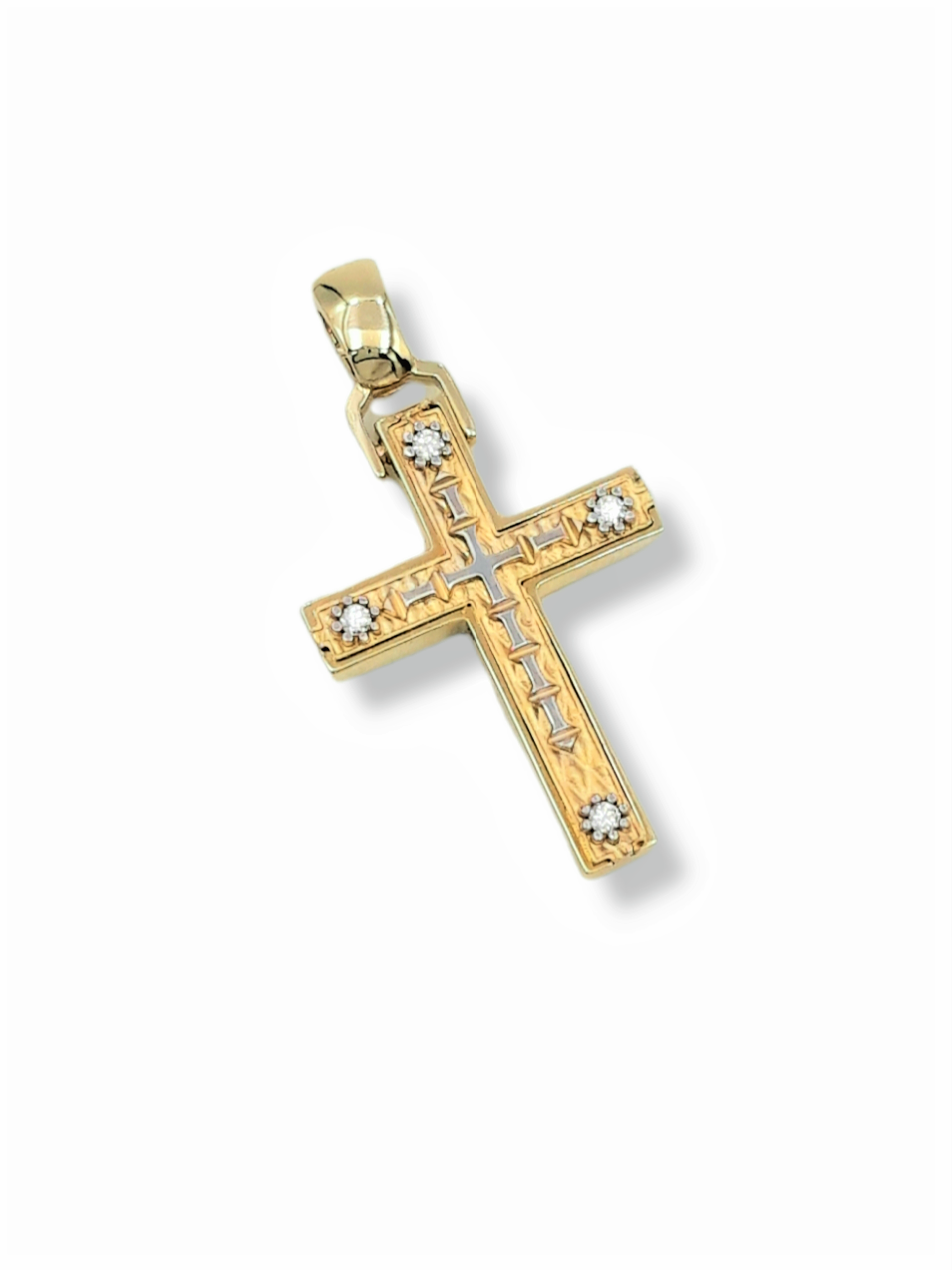 Γυναικείος Σταυρός διπλής όψης απο χρυσό 14 καρατίων διακοσμημένος με πέτρες ζιργκόν.